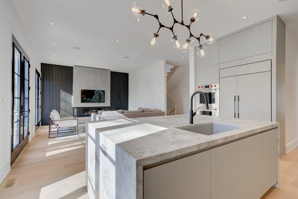 At the centre of a 35-foot-by-123-foot corner lot, this four-bedroom house was designed with grand proportions, starting with nine-foot ceilings in the basement and 10-foot ceilings on the main and upper levels.