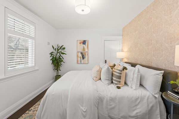 This two-storey house, built in the 1930s, has 936 square feet of living space, including three bedrooms, two full bathrooms, and combined living and dining areas with hardwood flooring and crown mouldings.
