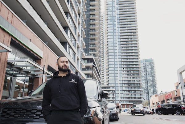 Real estate investor Sahil Jaggi in front of condominium buildings at 2200 Lakeshore Blvd. W., in Etobicoke, on April 21.Duane Cole/The Globe and Mail