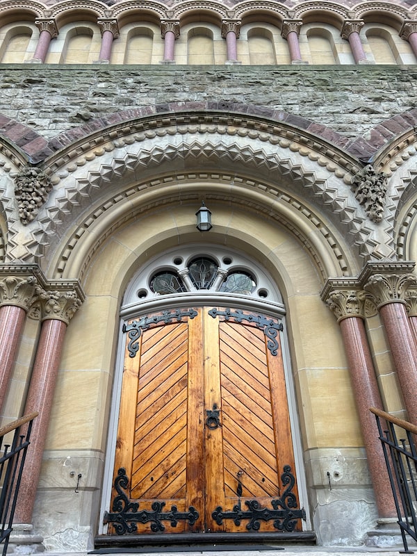 Admiring the terracotta cladding and the carvings of books and trefoils, Ms. Kyles explains that simply calling this building Gothic would be inaccurate. “There’s loads of Gothic detailing, but it’s a steel structure. So if it’s Gothic and built as if it were the 1400s, then it’s Gothic Revival, and if it’s got a steel structure, then it’s neo-Gothic.”