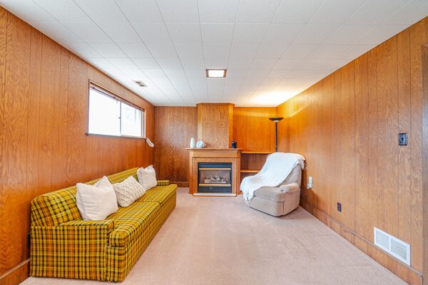 The home's basement includes a guest bedroom and a family room with a fireplace.Realmedia Real Estate Photography