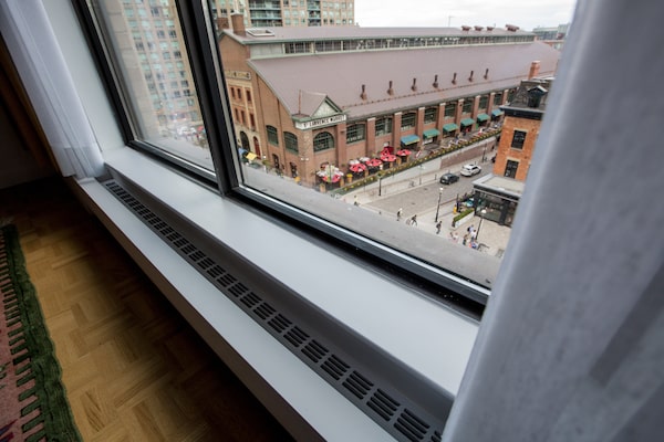 View from inside a seventh-floor condo at Market Square, overlooking Front Street and St. Lawrence Market.Tim Fraser/The Globe and Mail