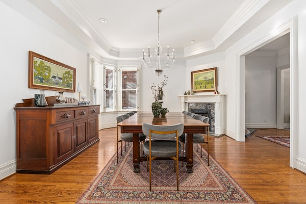 “The renovation in 1986 was done sympathetically to the neighbourhood and period with large crown mouldings and large baseboards, and the fireplaces were restored.”
