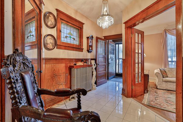 This 2,235-square-foot house preserves original wood trims, wainscotting and stained glass windows.
