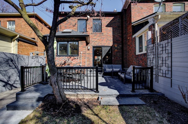 The owners of this two-storey house personalized it inside and out, from a new stone patio and landscaping of the 25- by 100-foot lot to heated flooring on all levels, including the basement.