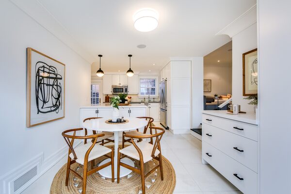 The eat-in kitchen has walkout access to a hot tub and patio in the backyard.Sotheby’s International Realty Canada