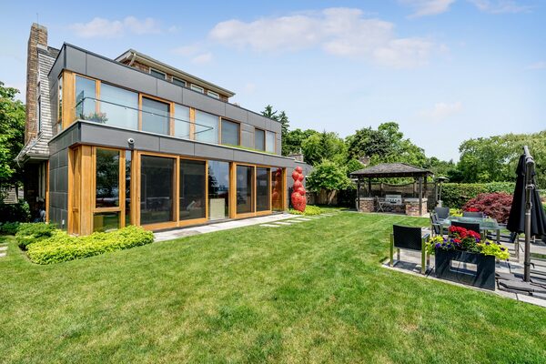 There were major renovations and expansions completed in 2001 and 2010 to this century-old home. The 3,482-square-foot space now has multiple walkouts to a south-facing backyard landscaped with terraced gardens, patios, rooftop decks and stone steps to a dock.