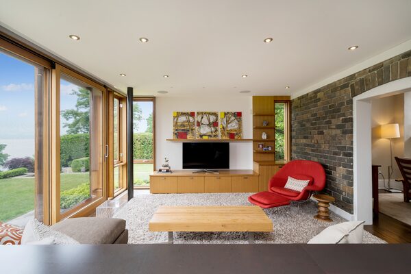 Original gumwood floors were preserved in the living and dining rooms, and brick walls – made from the ballast taken from vessels sailing from Scotland to load up with Canadian wheat – were left exposed in two bedrooms, the kitchen and great room.