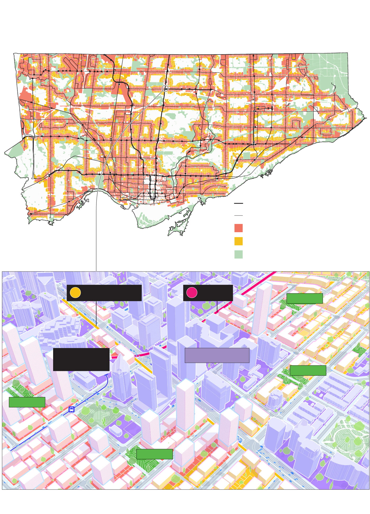 The Toronto city plan currently directs almost all intensification to areas classified as “mixed-use and apartment neighbourhoods” which accounts for just 8.5 per cent of the city.