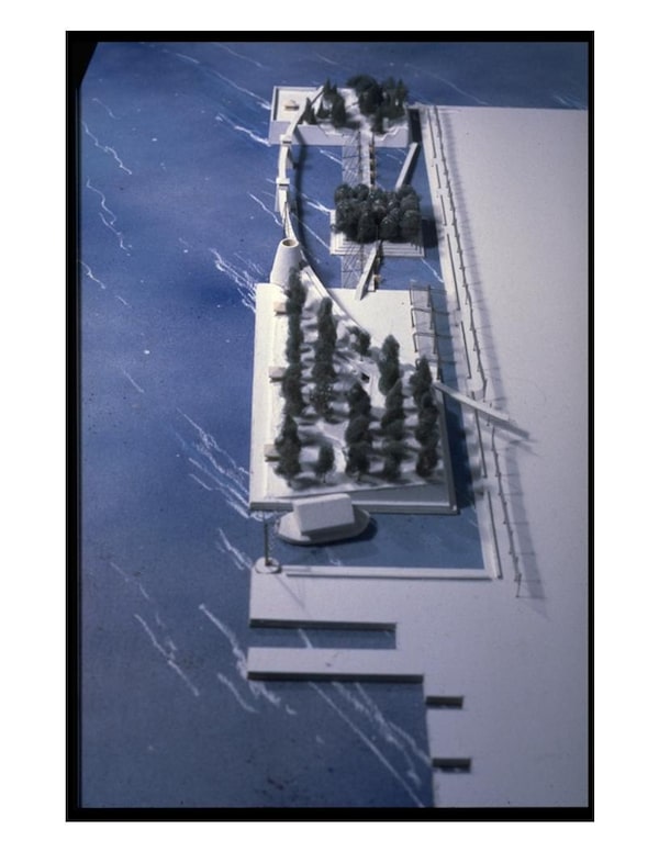 One way to make it crystal clear that the park did not belong to the development was to detach it from the mainland, which is exactly what the Natale-Scott-Browne team proposed. Three square islands – one big, one medium, one small – would connect to the mainland by a sweeping, curved bridge while also providing a viewing platform, and a salvaged and restored marine warehouse building would float on a barge beside the largest, easternmost island (it’s now at the foot of York Street, painted bright red, and contains a BeaverTails outlet). Some islands would have grottos, others formal gardens, and there would be terraces for sitting and viewing.