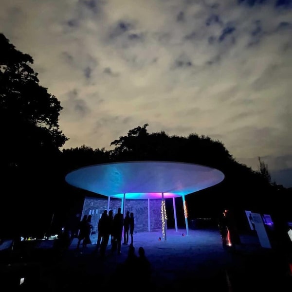 So what attracts musicians to this Space Age relic more than a dozen kilometres from Queen West or Dundas West, I wonder? Well, as Mr. Murphy explains, when the event started in 2020 “there were no indoor music performances,” but a small part of me thinks it might also be something else. While Toronto has some amazing architecture from the 1950s and 60s, very little of the superexpressive, California ‘googie’ stuff made it up here. Save for Uno Prii’s Flower Power apartment buildings and the odd hamburger joint shaped like a flying saucer, we’ve got precious little, so what we do have is, indeed, precious … and even non-aficionados can sense that.