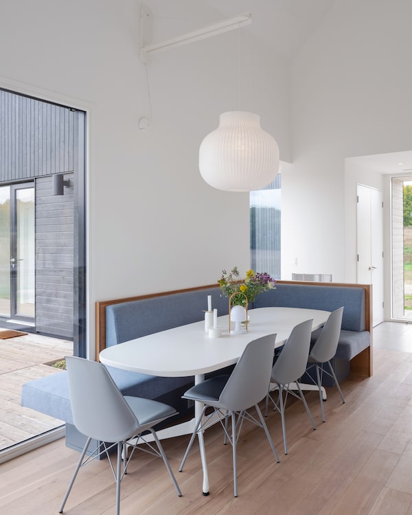 The dining table and its Ely-designed banquette.Scott Norsworthy/Scott Norsworthy