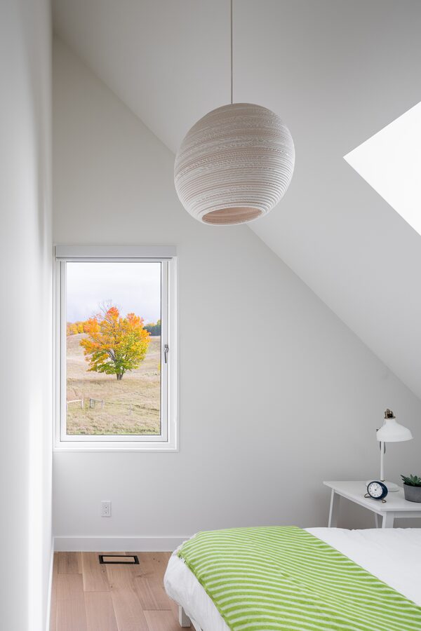 Because this was family land – Dr. Unger’s parents bought 80 hectares a long time ago – and Dr. Unger and Ms. Petersen were gifted with 18 hectares for their own use, much thought went into how to create that magic. To wit, after dismissing a site much closer to a stand of trees (for the diminished light and increased insects) and settling on a little rise in an open field of short grasses, the two house-forms and their windows could be positioned, literally, in any direction.