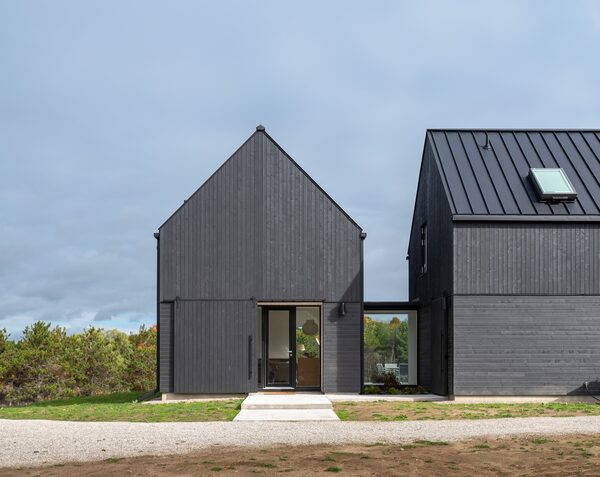 And symmetry, says Ms. Ely. “I like the idea of two buildings that are farm-like [and] exactly the same size … one is the public, one is the sleeping/family wing, and then they’re joined by a little glassy link, and then they all join [to] one really big deck.”