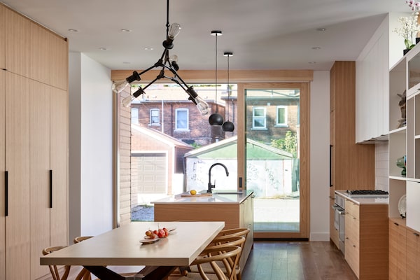 Spending time on the water taught Ms. Mazur and Mr. Aggus valuable design lessons, both in terms of aesthetics and functionality. Boats tend to be lined with wood, creating a home vibe even when far out at sea. And aside from mega-yachts, their interiors are ruthlessly compact, cramming sleeping, eating and bathing spaces into very compact spaces. Seeing efficiency gave them the confidence that they could fit a lot of rooms – four bedrooms, two full baths, a powder room, scads of storage everywhere and an open-concept living-dining-kitchen space plus a second-storey den – all within 1,800 square feet – a small enough footprint to protect as much of the aforementioned yard as possible.