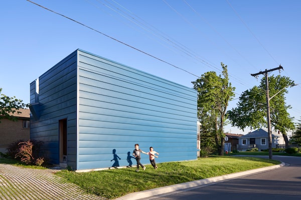 One thing you can say about Joey Giaimo’s family home in old Mississauga: It does not blend in. Out front it remains a homely 1920s bungalow; on the side and the back, it morphs into a rectangular block wrapped in blue steel.