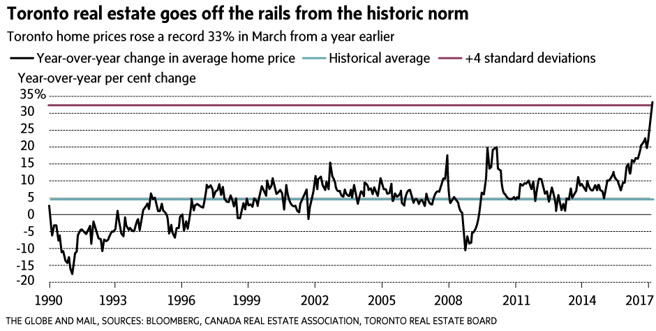 In Toronto, prospective buyers have found themselves in bidding wars, due in part to the largest price surge in almost 30 years and an ever tightening inventory supply.
