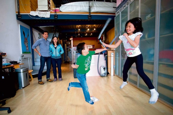 Instead, they're living the anti-suburban life. The four Jongs (and a cat) live in what is essentially a large, open room – a 1,000-square-foot loft near Vancouver's downtown and its rail-related industrial lands. They bought the condominium unit in 2003 for $269,900 (it's now assessed at $481,000). Their three beds are within inches of each other on the upstairs half-floor. Kali's play area has been carved out of space under the staircase. And a family's worth of stuff is stacked tidily in cabinets, on shelving, and in plastic boxes as high as they'll go along the walls.