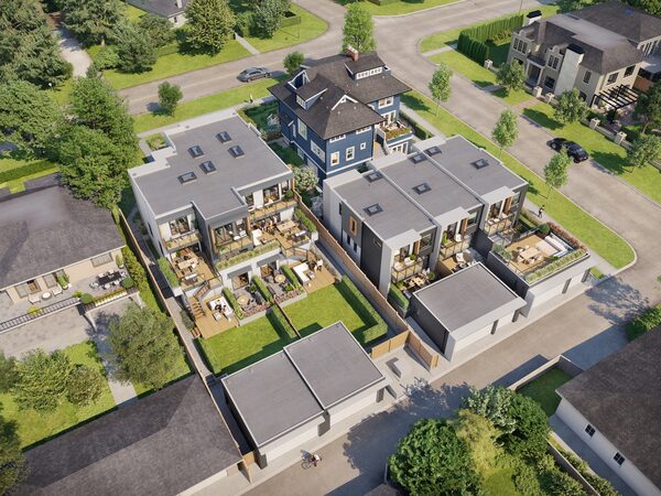 A Vancouver infill project on a quiet street in the South Granville Marpole area illustrates the potential for densifying single-family lots.Kind Development Group