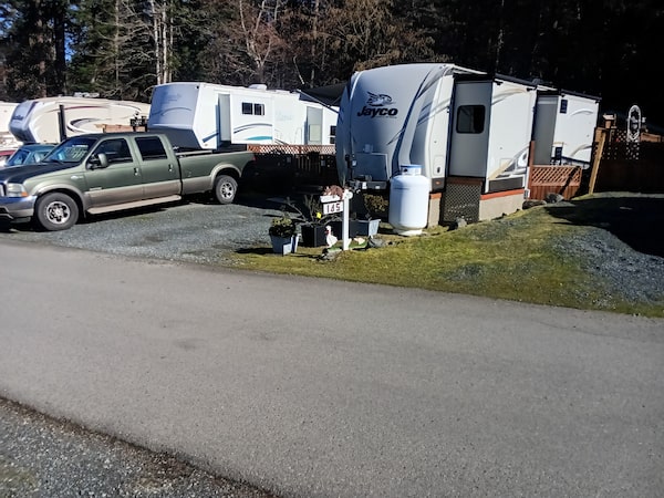 The Griffiths, who came to B.C. from Australia 59 years ago, have made their RV a permanent residence. However, many jurisdictions, including the Regional District of Nanaimo, limit the amount of time a person can dwell full-time in an RV. The B.C. Building Code also prohibits full-time RV dwelling. The Griffiths live on the outskirts of Parksville alongside many other full-time RV residents, mostly seniors, who’ve found affordable housing in the Riverbend Cottage & RV Resort. They might not have a proper garden, and freezing weather has its challenges, but they have a tight-knit community, and their fifth-wheel is nestled in 16 acres of forest along the Englishman River with a view of snow-capped mountains behind them. Mr. Griffiths says the atypical lifestyle suits them well, and they have no intention of giving it up.