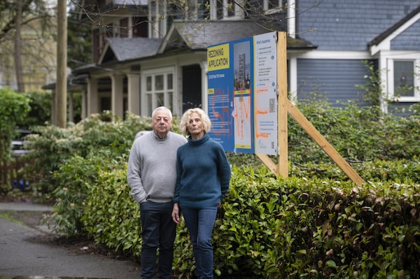 Liesbeth and Yves Thoraval live on 11th Ave., in a house built in 1911, immediately next door to a proposed tower. If approved, the tower’s underground parking entrance and commercial loading would run alongside their front yard.Tijana Martin/The Globe and Mail