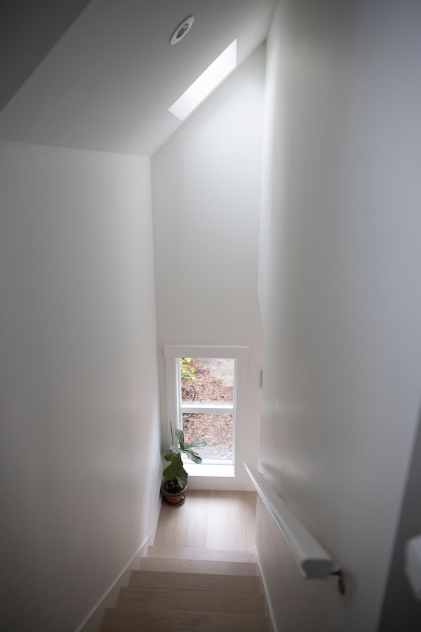 The stairs leading down in Bula's in-laws laneway house which is located in one of several older neighbourhoods that ring the downtown lined with early-20th-century houses.Rafal Gerszak/The Globe and Mail