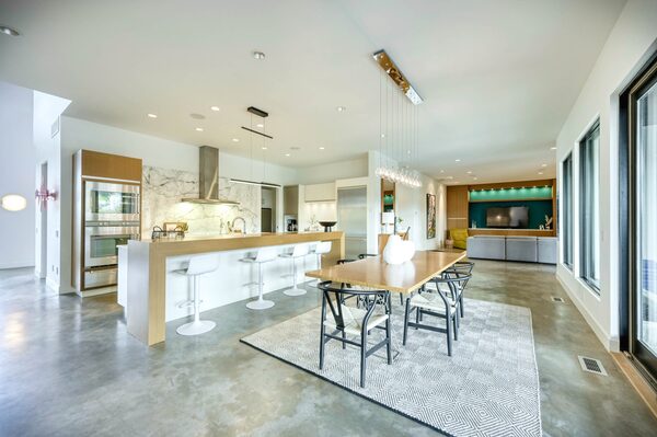 Built in 2013, the 8,500-square-foot luxury house has seven bedrooms, eight bathrooms, a separate suite, saltwater pool, fire pit, large room, gym and outdoor patio. The house is contemporary, with exposed wood features, ultra-high ceilings and polished concrete floors.