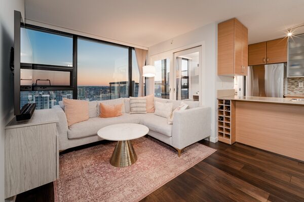 This urban sub-penthouse unit is in a building that was built in 2006, near Yaletown, with southern views of the city and access to all downtown amenities.