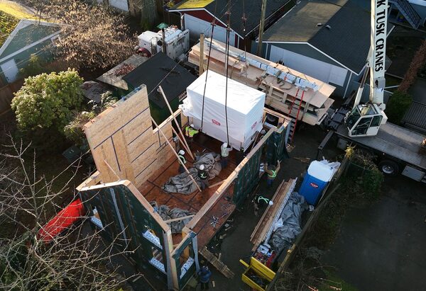 “We’ve been building mostly like a lot of other builders … which is the traditional kind of person in a pickup truck, who brings all the stuff to site, and you build it, stick frame,” said Ms. Schatz.