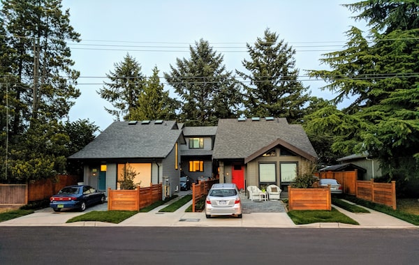 Kathleen Higgins, a paralegal, and her husband John Higgins, an architect, got unanimous approval from Delta city council to rezone their single-family house so they could build four units in two separate duplex-style buildings, side by side. Everyone has full ownership of their unit and can sell it off, if they choose.