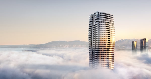 Renderings of the CURV condo project in Vancouver by partners Brivia Group and Henson Group. The 60-storey luxury tower is in pre-sales and officials say it has been selling to investors who own dozens of properties.Brivia Group/Henson Group