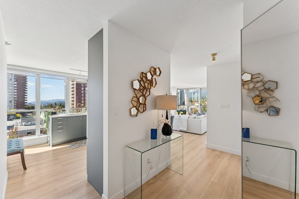 Built in 1999, the layout is more spacious than newer condos, and there are views of the city and ocean, which gives the apartment a bright, airy feel.