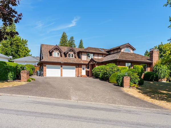This four-bedroom, four-bathroom home was a high-end, executive-style residence when it was built in 1985. The 3,797-square-foot house sits on nearly a third of an acre on a hill with views of Mount Baker, on a quiet street close to downtown Cloverdale.
