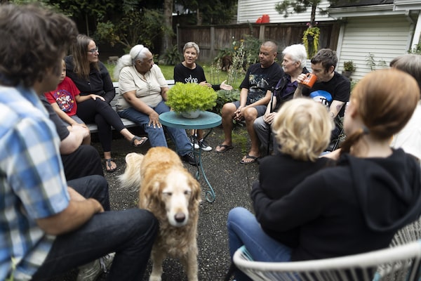 Linsea O'Shea, middle, meets with her neighbours to discuss the demo-viction.Rafal Gerszak/The Globe and Mail