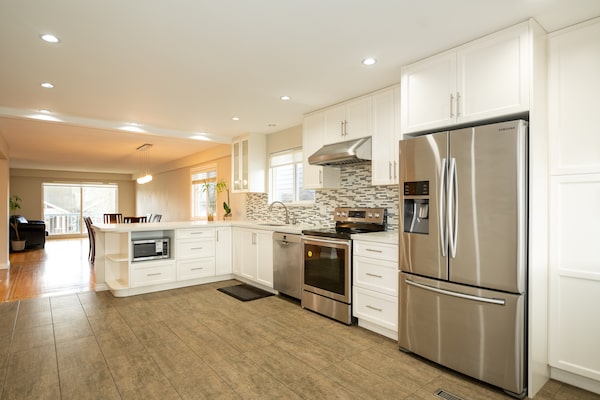 The house has a practical layout to accommodate intergenerational living or a separate rental suite, with a self-contained three bedrooms, kitchen and living area upstairs and another three bedrooms, kitchen and living area downstairs. It underwent updates a decade ago, including kitchen and bathroom renovations.