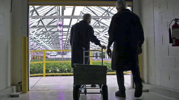 Aphria Inc. employees enter the company’s Leamington, Ont., greenhouse.