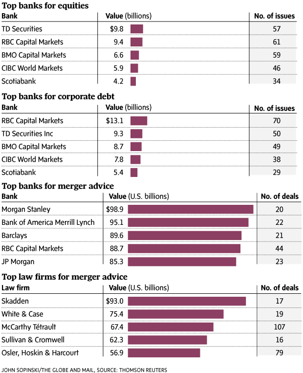 | 13 | 2.2 | Feb. 3 | Lowe's Companies buys Rona | Scotia Capital | CIBC World Markets; RBC Dominion Securities | Norton Rose Fulbright | Stikeman Elliott; Hunton & Williams |