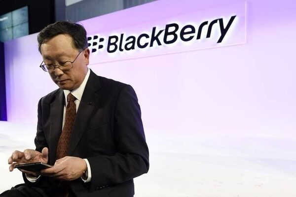 BlackBerry chief executive John Chen uses a Passport smartphone following the official launch event in Toronto, on Sept. 24, 2014.Aaron Harris/Reuters