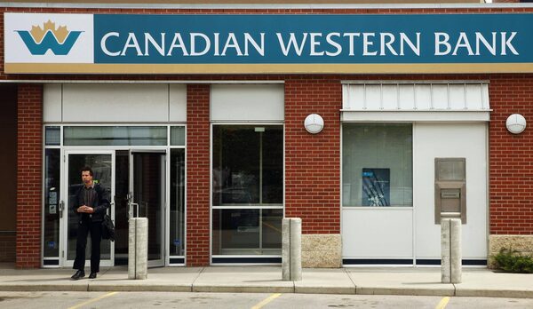 A customer walks out of a Canadian Western Bank branch in Calgary, in this file photo.TODD KOROL/Reuters