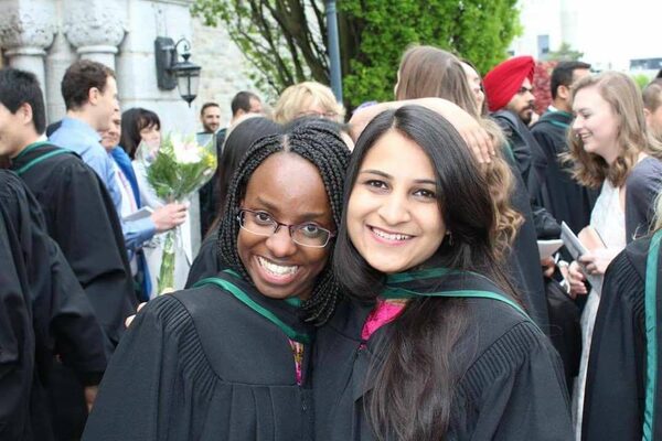 Helen Kobusinge, left, with classmate Divya Tulapurkar, graduated with MBAs from the Smith School of Business at Queen’s University in Kingston.
