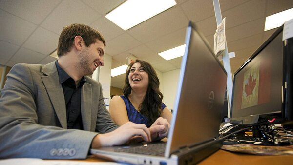 Mark Zanewick and Cassandra Ruggiero at the AIESEC offices in Toronto.Tim Fraser/The Globe and Mail