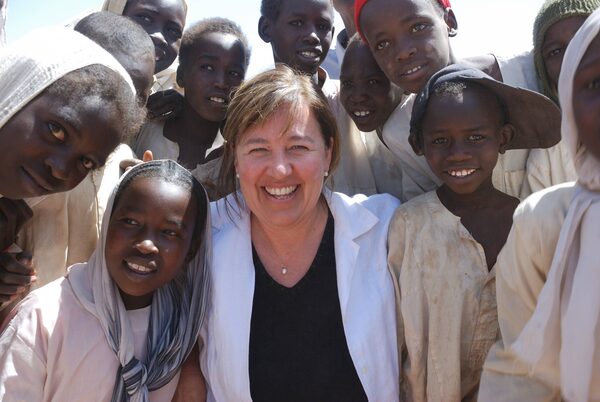 Rosemary McCarney, president and CEO of Plan Canada, visits with a group of young people in Darfur, 2007.