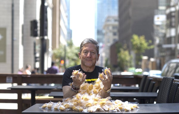 Andy Nulman, co-founder and CEO of Play the Future, poses with fortune cookies outside his offices in Montreal, August 8, 2016.Christinne Muschi/The Globe and Mail