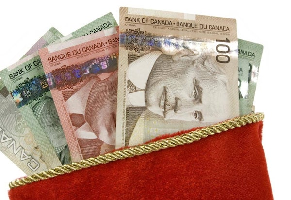 Christmas Stocking and canadian dollars.