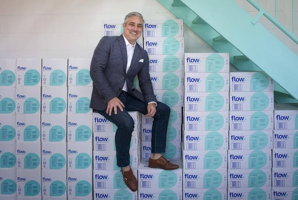 Nicholas Reichenbach, 42, is the founder and CEO of Flow Water, an Ontario-based company that packages alkaline spring water in eco-friendly Tetra Paks in Aurora, Ont. He's started 11 companies.