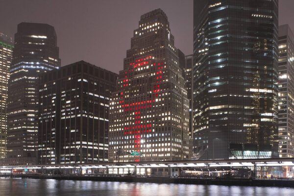 To draw more attention to gender disparities, Catalyst signed up 34 companies across 10 cities in five countries to use window lighting to display the universal female symbol, the circle with a cross, on more than 30 buildings on the eve of International Women's Day. The buildings will remain lit up throughout today.