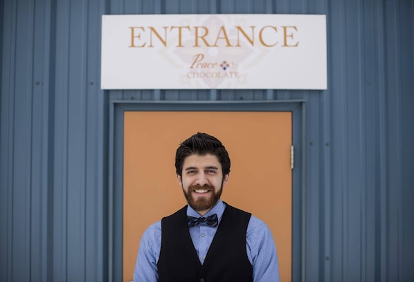 Tareq Hadhad, a Syrian refugee and founder of Peace by Chocolate, poses in front of his chocolate factory in Antigonish, N.S. on Jan. 9, 2018.Darren Calabrese/The Globe and Mail
