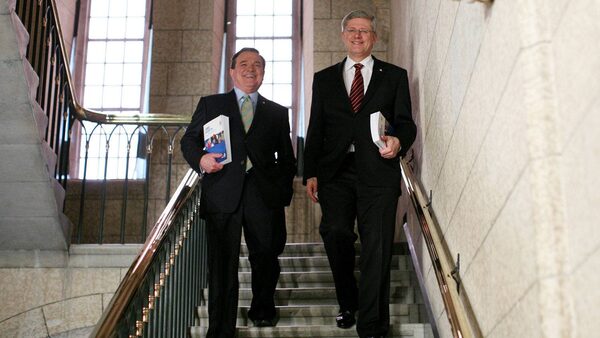 Prime Minister Stephen Harper (R) and Finance Minister Jim Flaherty (L) walk to the House of Commons to deliver the budget on Parliament Hill in Ottawa.Dave Chan for The Globe and Mail