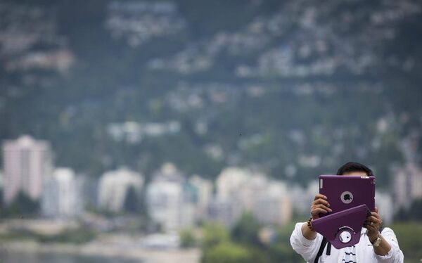 A tourist takes a selfie in Vancouver's Stanley Park, June 19, 2014.John Lehmann/The Globe and Mail