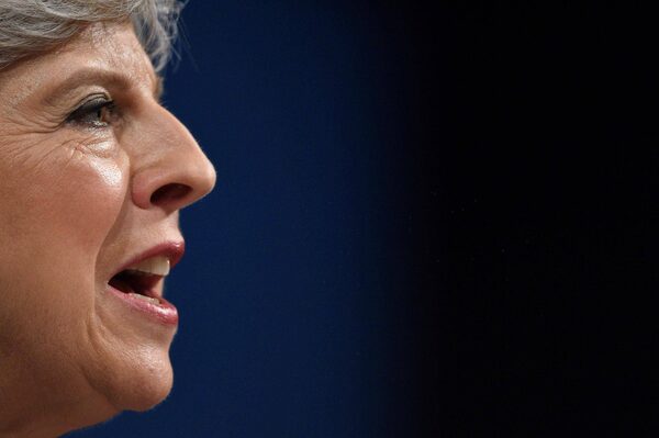 This file photo taken on October 4, 2017 shows Britain's Prime Minister Theresa May delivers her speech on the final day of the Conservative Party annual conference in Manchester.OLI SCARFF/AFP / Getty Images